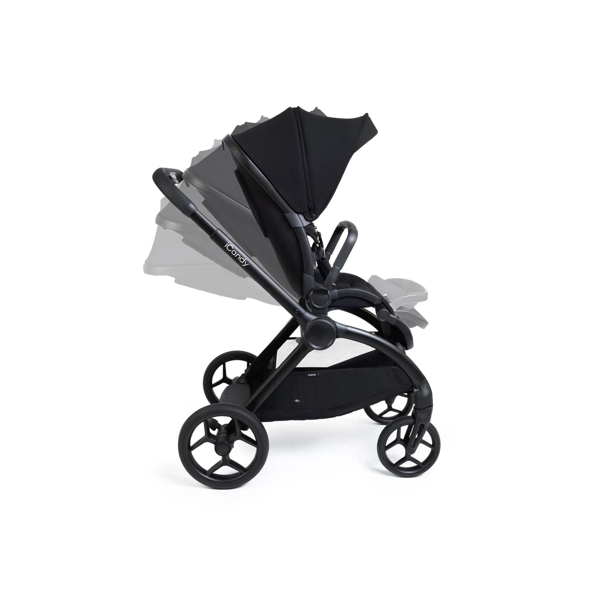 Practical details make everyday outings easier, including a supportive padded head-hugger, integrated Ride-on Board for an older sibling, discreet seat storage pocket and compatibility with the optional iCandy Hub Light for added visibility.
