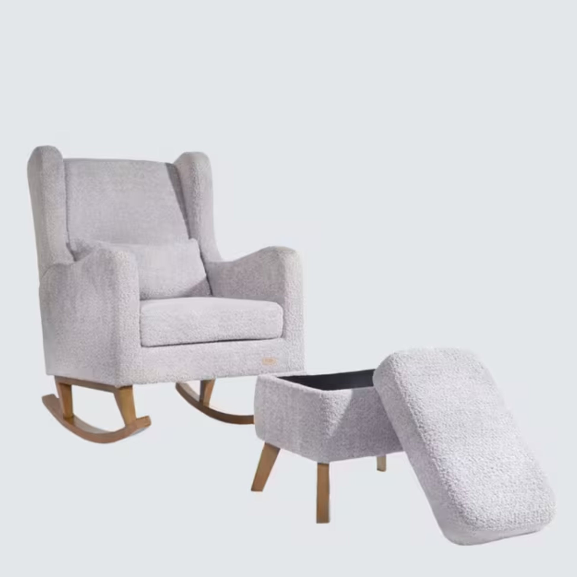 - Footstool with Hidden Storage: A functional and stylish addition—rest your feet and discreetly stow away nursery essentials.