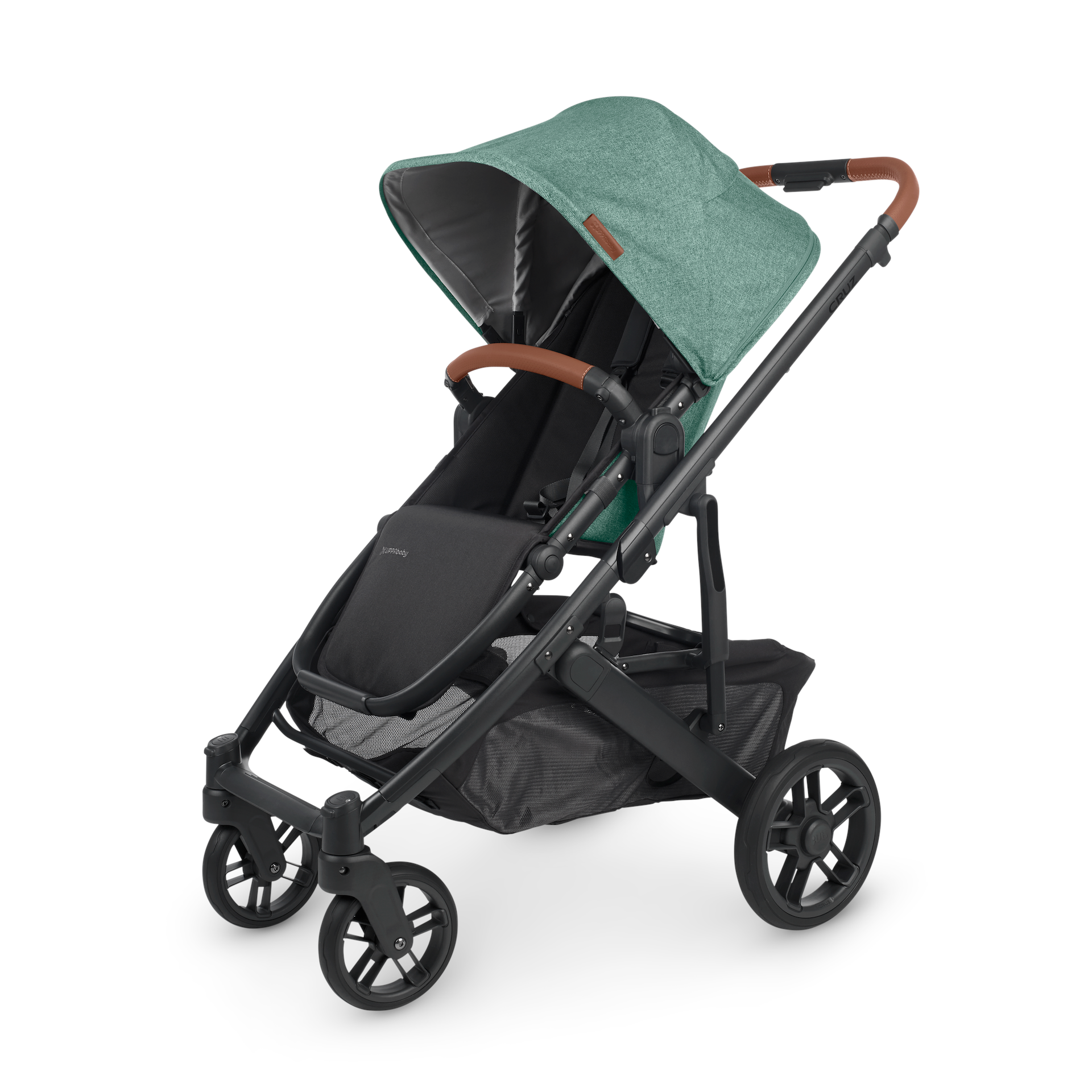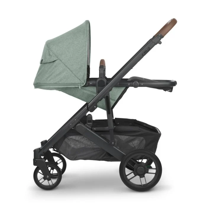 Introducing the UPPAbaby Cruz V2, the single-seat model of Ireland’s most popular buggy - The UPPAbaby Vista V2 (which can seat up to 2 children). The Cruz is slightly smaller than the Vista and as a result it's more compact and lighter. But it also shares quite a lot of similarities with its sibling model. True to the UPPAbaby brand, the Cruz combines versatility and function with upmarket style and luxury. Big wheels, bouncy suspension and a whopper-sized shopping basket! And it's toddler-board compatible. Oh yes!