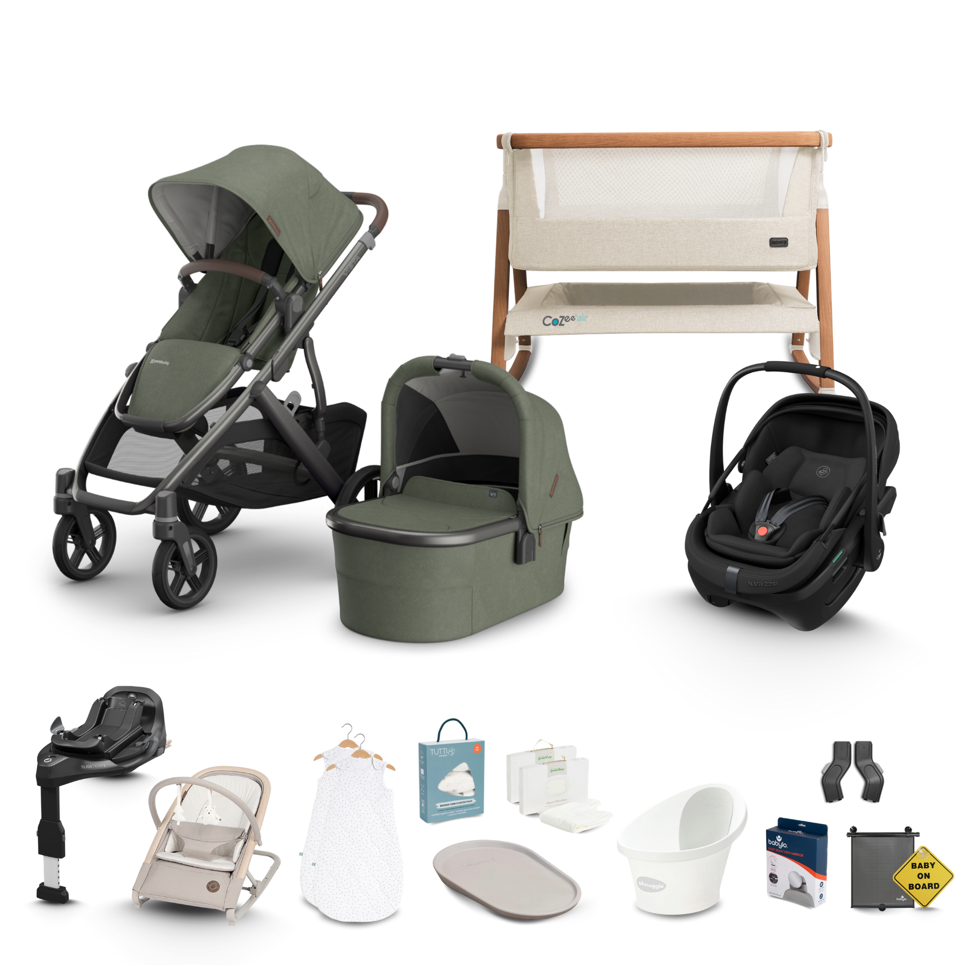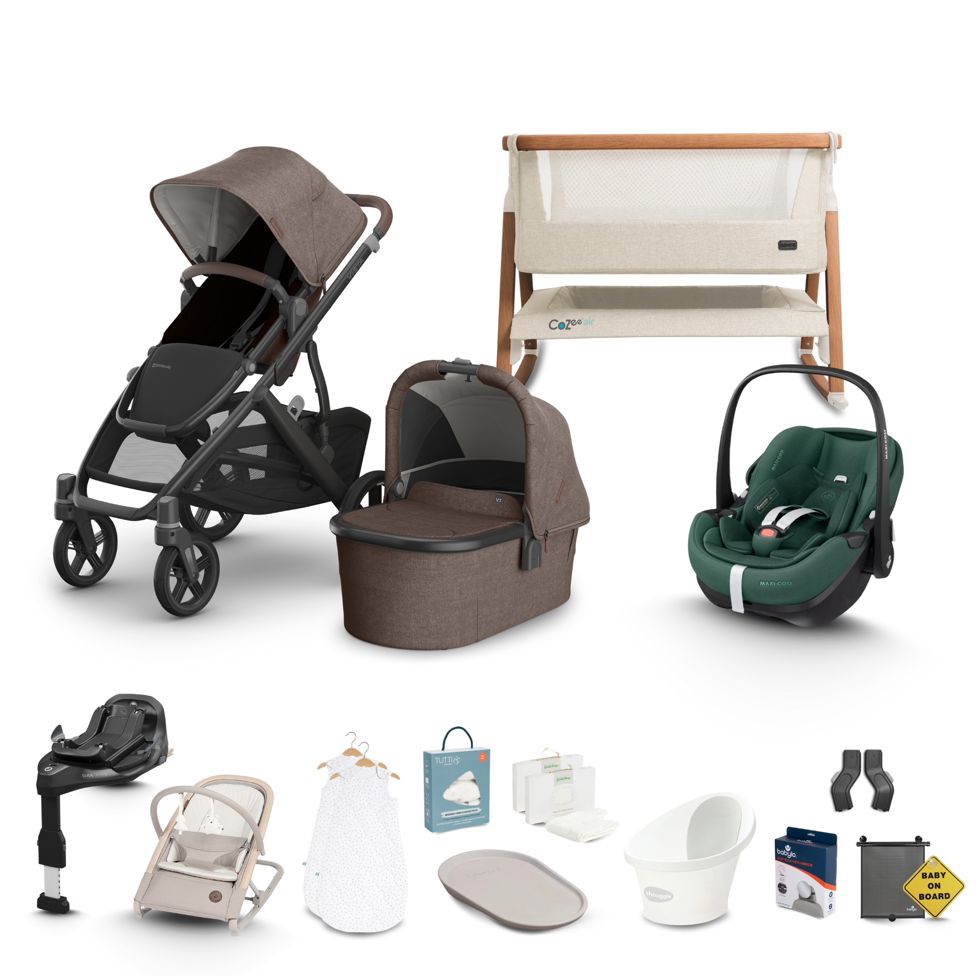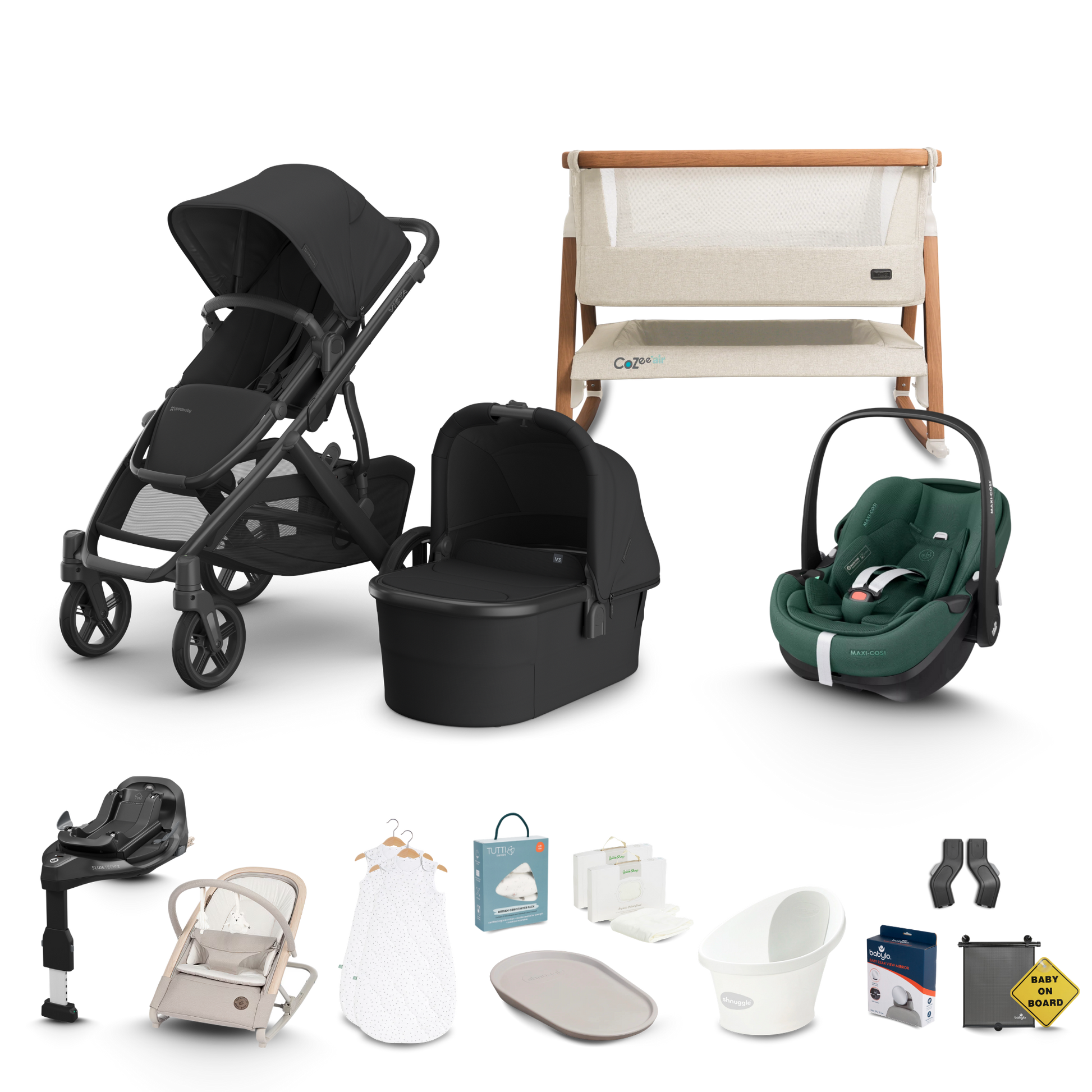 Our premium Complete Newborn Bundle has been carefully curated by our team of experts and features brands you love including Maxi Cosi, Tutti Bambini, Little Green Sheep, Shnuggle and more!
