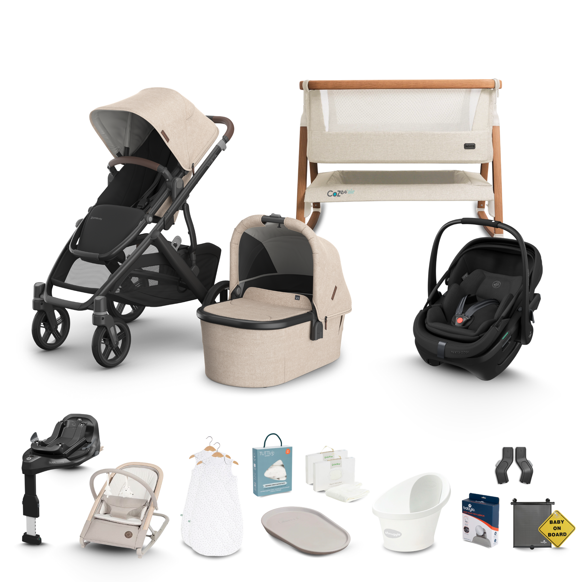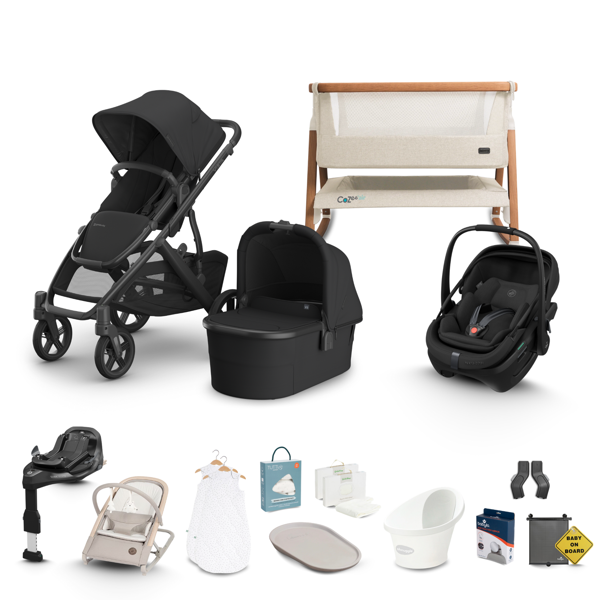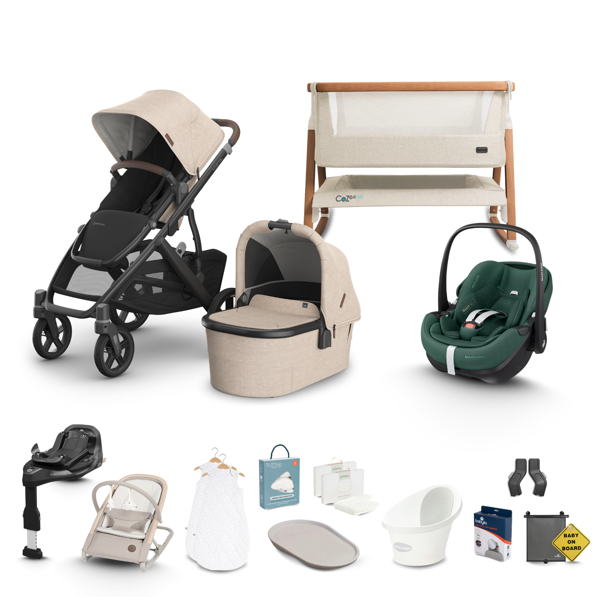 Our premium Complete Newborn Bundle has been carefully curated by our team of experts and features brands you love including Maxi Cosi, Tutti Bambini, Little Green Sheep, Shnuggle and more!