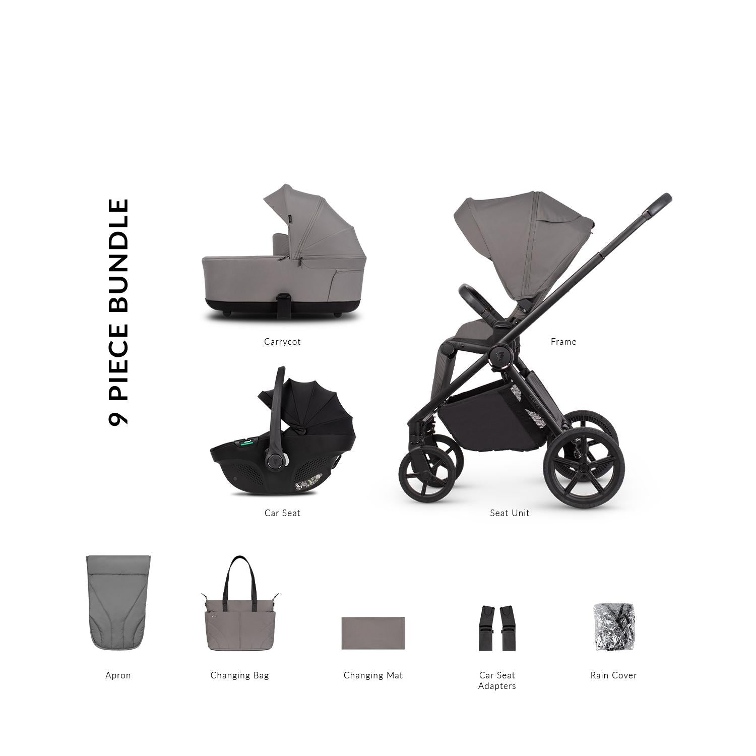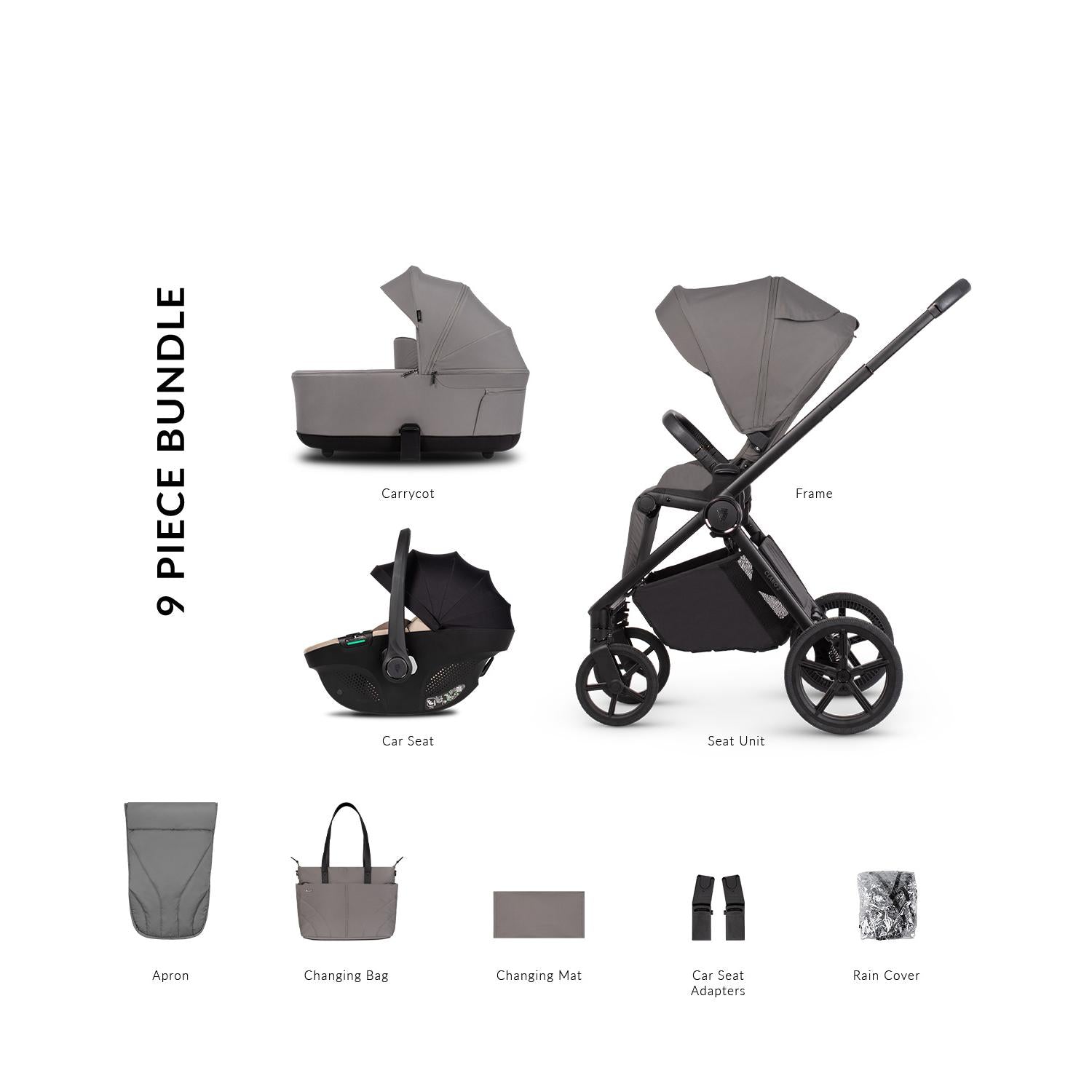 - Car seat adapters included, allowing seamless attachment to the pushchair frame.
